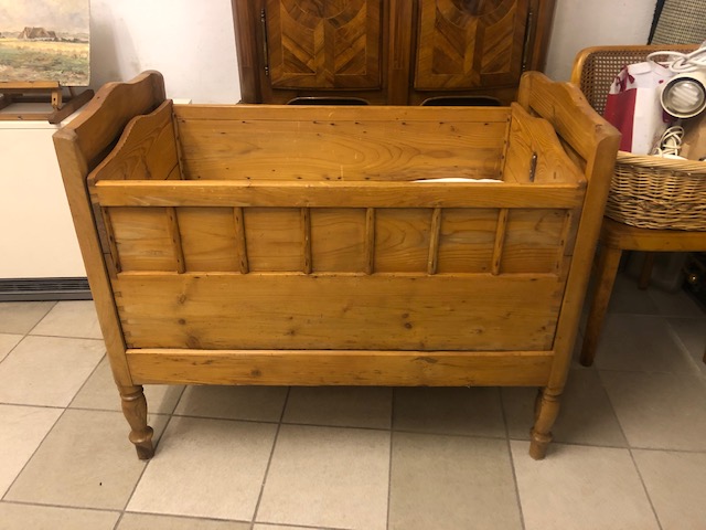 Kinderbettchen/Wiege, um 1850 in Weichholz massiv,