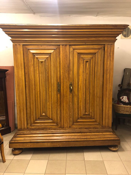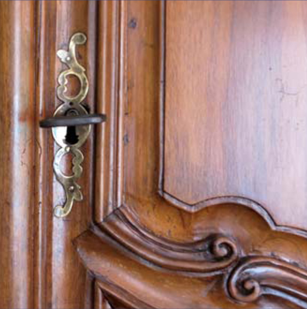 Soweit vorhanden und noch funktionstüchtig, verwenden wir die Originalbeschläge wieder. Fehlende Beschläge werden in Handarbeit neu gegossen entweder gemäß den noch vorhandenen Originalen oder nach Mustern aus entsprechender Zeit und Herstellungsort.