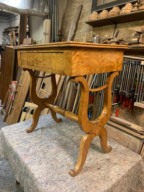 Wir polieren in traditioneller Handarbeit mit Schellack oder Wachs.