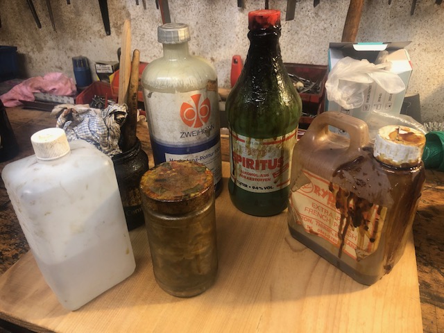 Alte Farbschichten werden mit größter Sorgfalt entfernt. Die Möbel werden vorsichtig abgewaschen, um ihre Substanz möglichst unbeschadet zu erhalten.